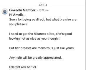 O tendință îngrijorătoare a apărut pe LinkedIn: femeile sunt din ce în ce mai des bombardate cu avansuri nesolicitate din partea bărbaților care folosesc platforma ca mijloc de a iniția relații romantice. Peste 90% dintre femei au declarat că au primit cel puțin un mesaj nepotrivit sau avans romantic pe platformă, conform unui sondaj recent. Mesajele de acest fel au inclus comentarii obscene și complimente deplasate privind aspectul fizic.