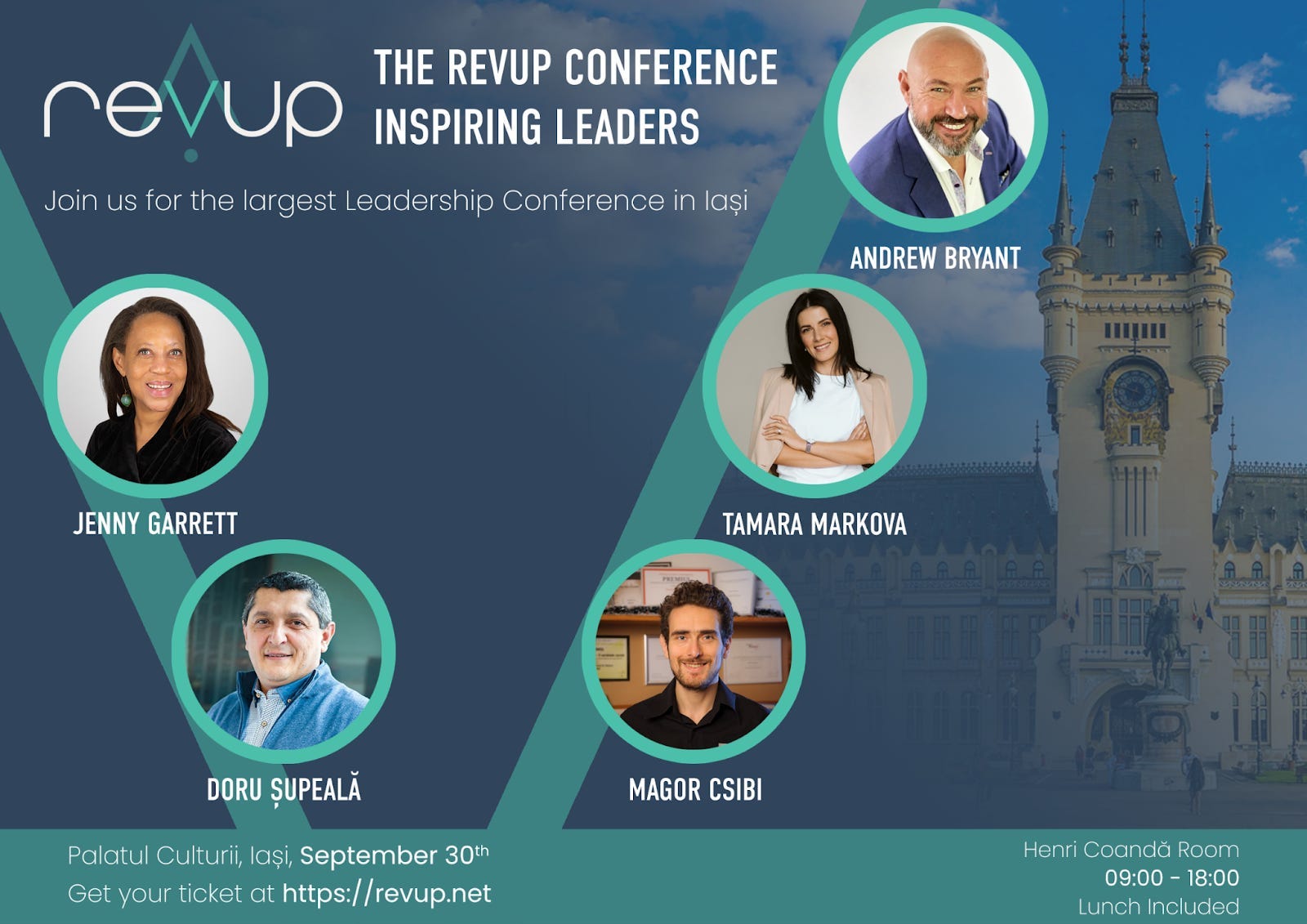 Pe 30 septembrie ne vedem la Iași la The Revup Conference: Inspiring Leaders. Între speakeri, Andrew Bryant, Tamara Markova și Jenny Garrett, dar și Doru Șupeală și Magor Csibi. Conferința are loc la Palatul Culturii din Iași. Biletele pot fi achiziționate de aici. Ne vedem acolo!